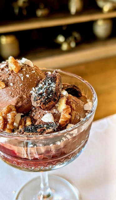 kluski śląskie, sos wiśniowy, karmelizowane buraczki